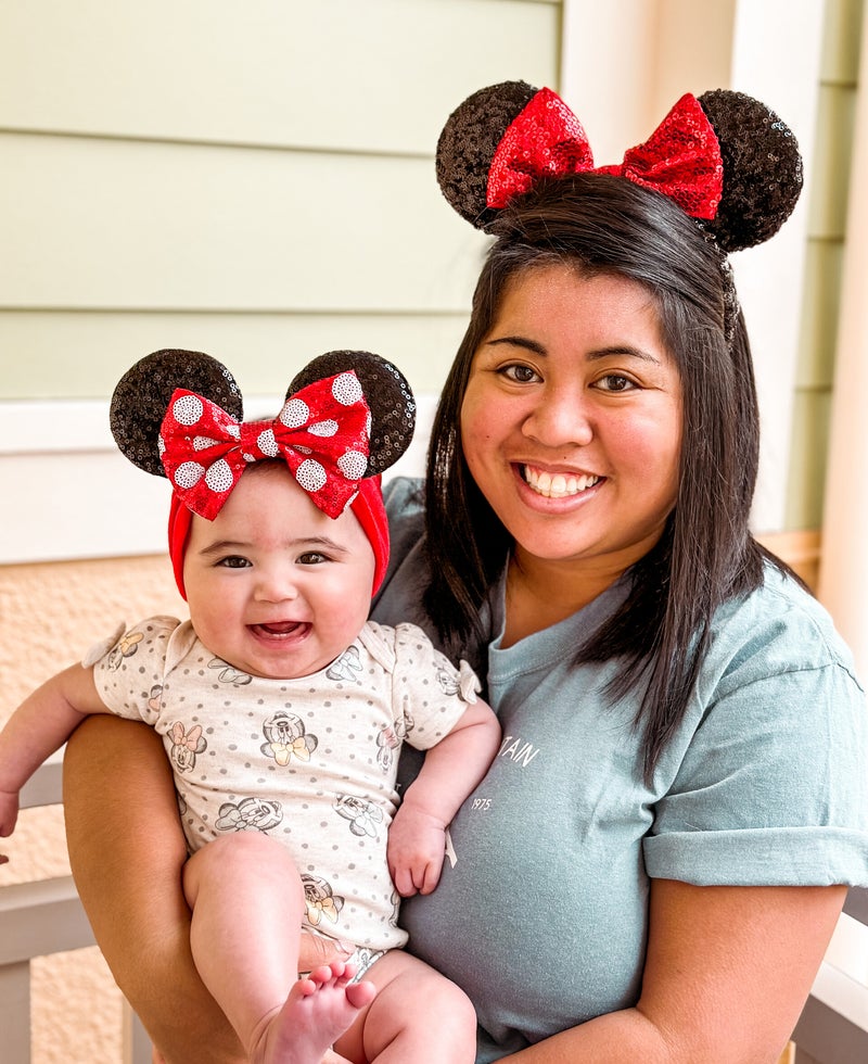 Extra tip for my girl mamas, 100% recommend the ears that are pictured to the left for baby. This pair that I got was $8.99 but the price ranges depending on the style you want! The band is really stretchy and soft. They didn't seem to bother her at all except when they fell over her eyes. They actually stayed on pretty well and I think we will be able to use them multiple times even when she gets older! There are a ton of other options that for ears that are very cute. Click here to get off Amazon!